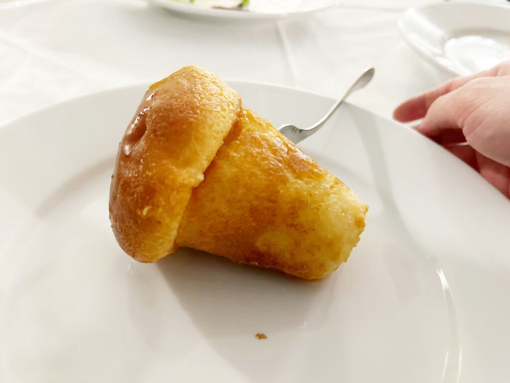 しばらく経ってやってきたババはカップケーキを少し細長くしたような、とてもシンプルな見た目。食感はふわふわしていて、ケーキのよう。そして甘い!そして洋酒がたっぷりしみ込んでいて、上品ないい香り。